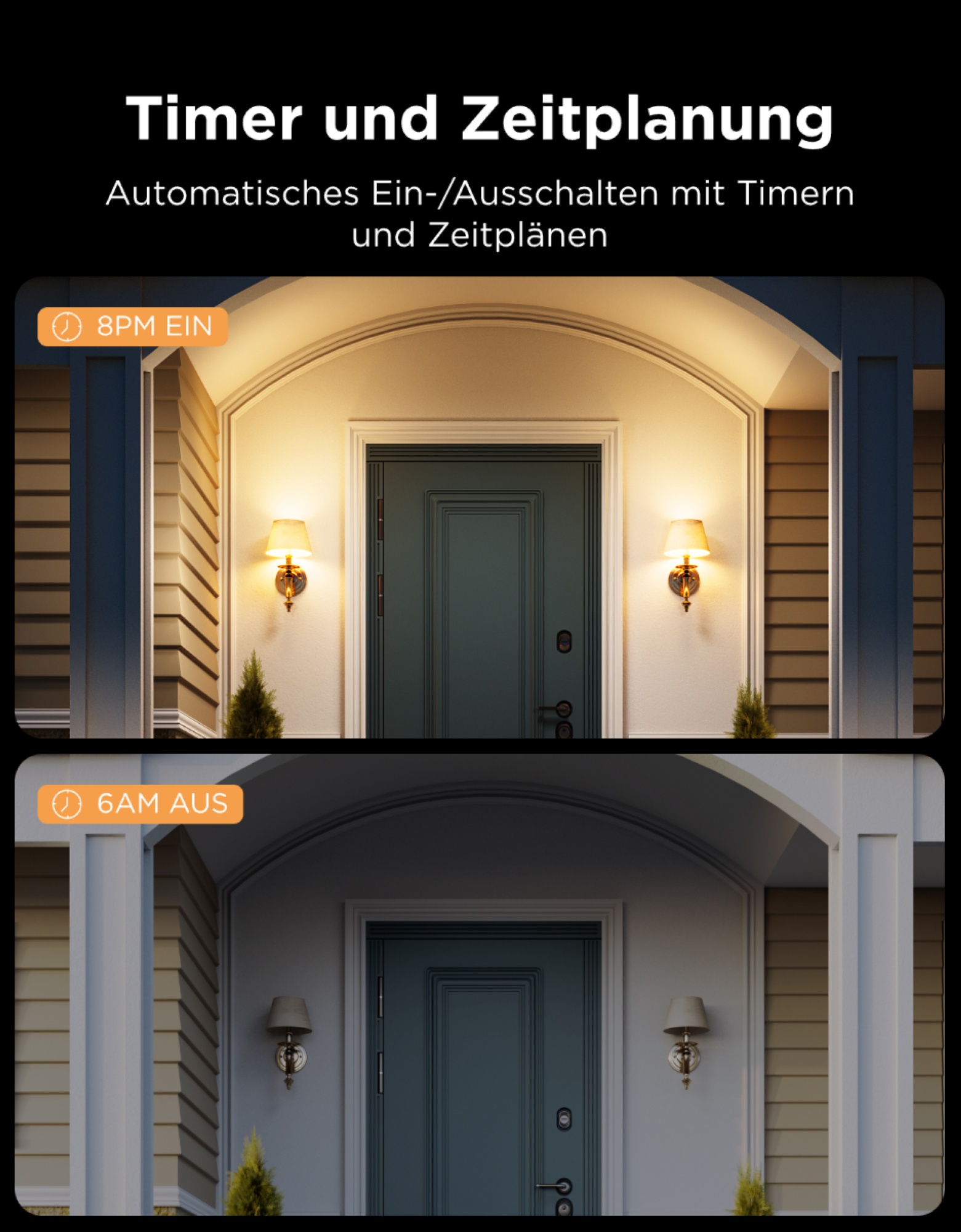- Timer og Tidsplaner: Integrer pærerne i din daglige rutine med timerfunktioner og tilstande som solopgang og solnedgang. Vågn op energisk om morgenen eller slap af efter en lang dag.