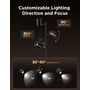 - Justerbar lysretning: Lampearme roterer 350° horisontalt og 90° vertikalt. Lampehoveder kan rotere 30°-90° for præcis belysning.