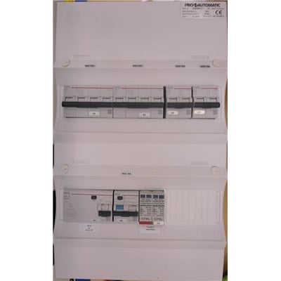 Færdigmonteret gruppetavle UG12. Inkluderer 1xHPFI 40A 30mA, 2xC10 2P, 1xC10A/30mA, 2xC16 4P og 1xTransient.