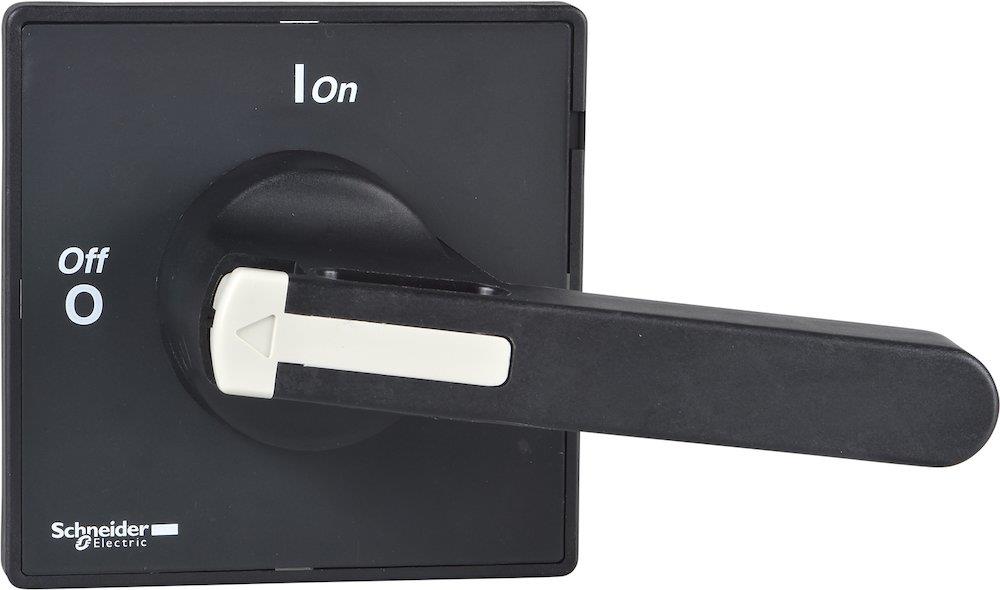 Sort greb (90x90 mm) til TeSys Vario V5 og V6 lastadskillere fra Schneider Electric. Kan aflåses og fastgøres med 4 skruer.