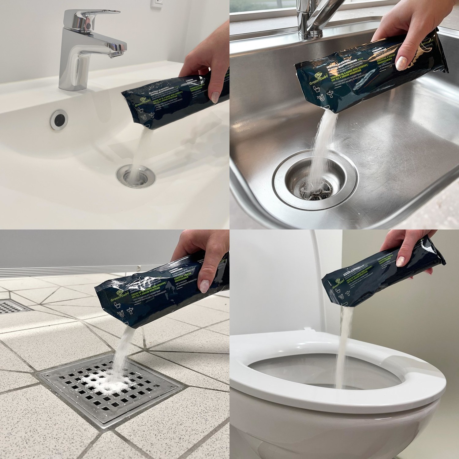Produktet er laboratorietestet og sikkert at anvende i alle typer afløb, herunder vaske, toiletter, badekar og septiktanke. Det er ligeledes velegnet til forebyggende vedligeholdelse for at undgå fremtidige blokeringer.