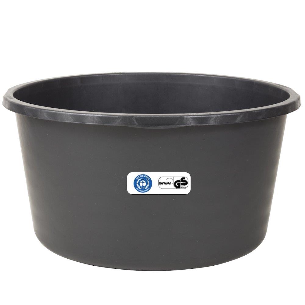 Robust murerbalje med 65 liters kapacitet. Fremstillet i syrefast materiale med forstærket bund, ergonomiske bærehåndtag og literskala. TUV GS testet og Blue Angel certificeret.