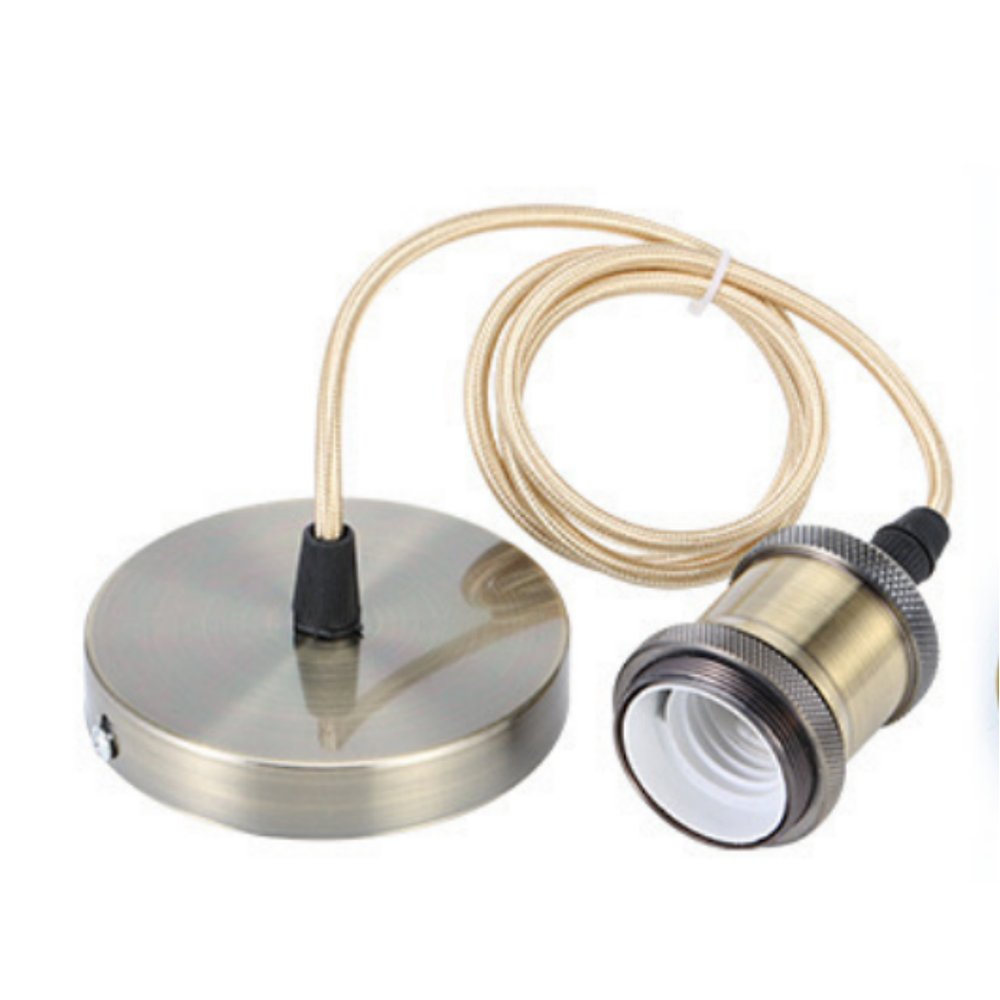 Stilfuld lampefatning og roset i grøn-bronze med 150 cm ledning og E27 fatning. Maks. 60W.