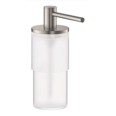 Atrio sæbedispenser i glas og metal med børstet stål finish. Passer i Atrio New (40 304) holder. Indeholder 160 ml flydende sæbe.