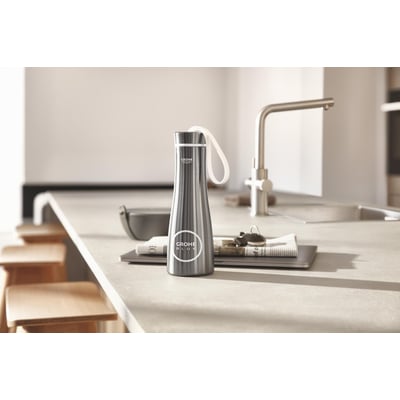 Denne stilfulde GROHE Blue drikkeflaske er perfekt til at holde dine drikkevarer kolde eller varme, mens du er på farten. Med sit elegante design og praktiske funktioner er den ideel til både hverdagsbrug og udendørs eventyr.