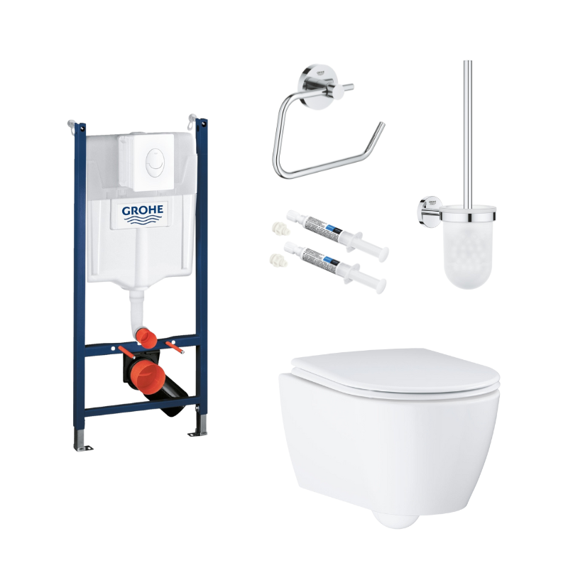 Denne komplette toiletpakke fra GROHE kombinerer funktionalitet og stil med en elegant væghængt løsning. Pakken indeholder en Rapid cisterne på 113 cm, en trykplade samt det stilfulde Grohe Essence væghængte toilet med et medfølgende SoftClose toiletsæde.