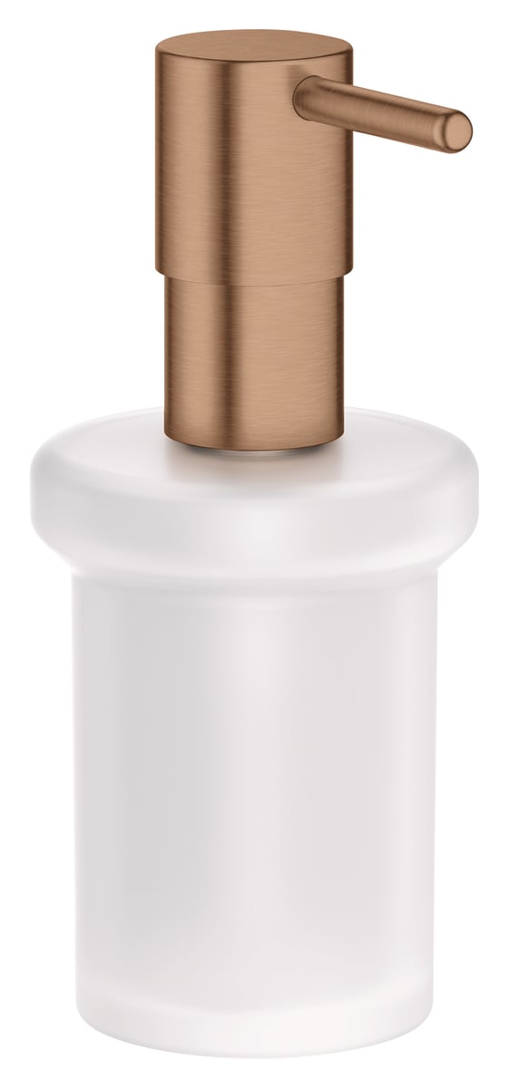 Grohe Essentials sæbedispenser i glas og metal med børstet kobberfinish. Rummer 160ml og passer i flere forskellige holdere.