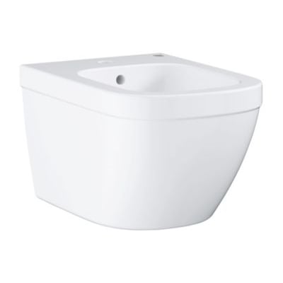 Euro Ceramic væghængt bidet fra Grohe. Ét hul, med overløb og inklusiv fikseringssæt. Fremstillet i porcelæn med usynlig montering.