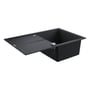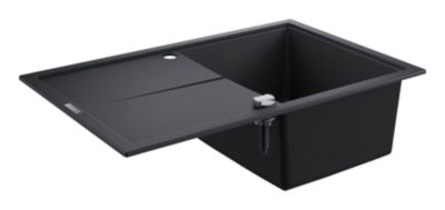 Denne GROHE K400 kompositvask kombinerer funktionalitet med et moderne design. Vasken er fremstillet i holdbart kvartskomposit og leveres i en elegant sort farve, der passer ind i de fleste køkkener. Med den integrerede afløbsbakke får du ekstra plads til at placere service eller grøntsager.