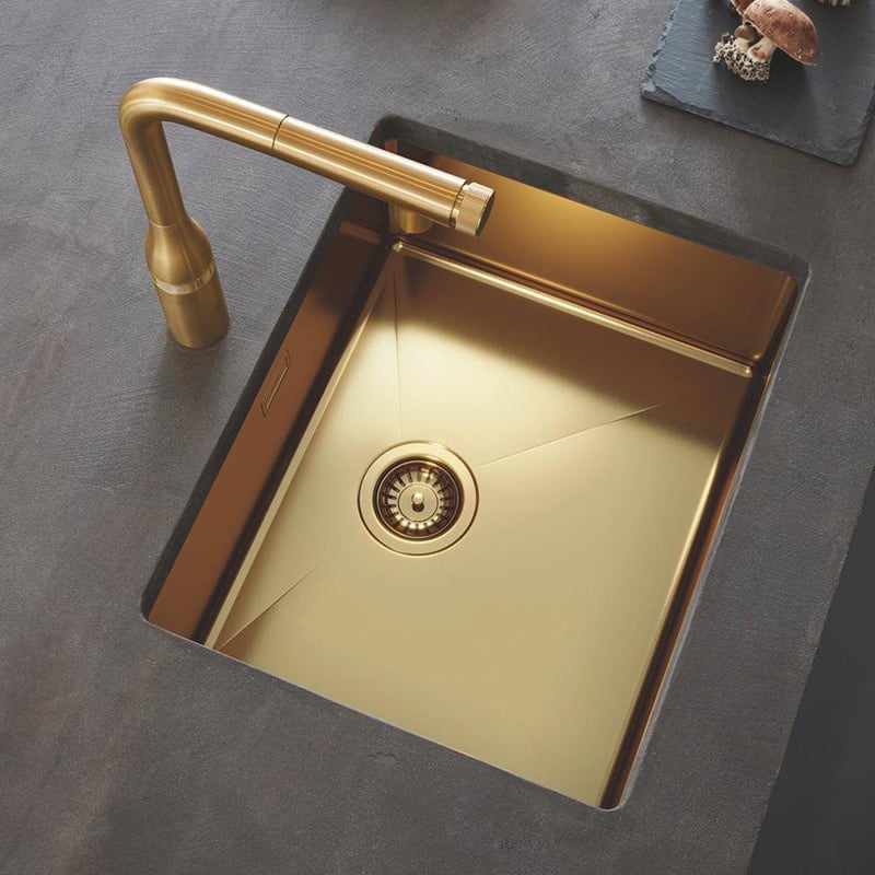 GROHE K700U køkkenvask i rustfrit stål med børstet Cool Sunrise finish. Velegnet til underlimning, nedfældning eller planlimning.