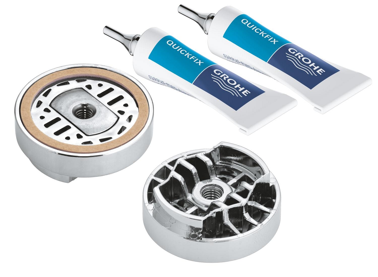 Grohe QuickGlue Set S2, hærdningstid 24 timer. Indeholder: 2 x lim, 1 x alkoholserviet, 2 x monteringsskabelon, 2 x skive. Velegnet til fliser, marmor, sten, glas, beton, træ...