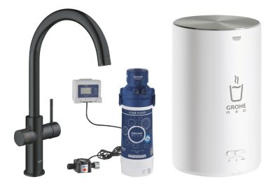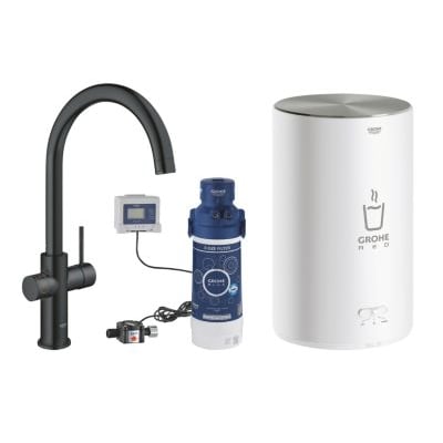 - Grohe Red filter: Beskytter kedlen mod kalkaflejringer med en kapacitet på 600 liter ved 20° dKH. Inkluderer 5-trinsfilter og gennemstrømningsmåler.