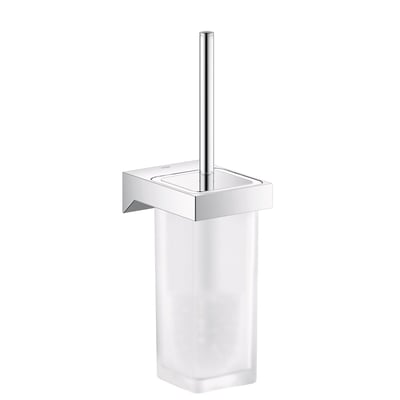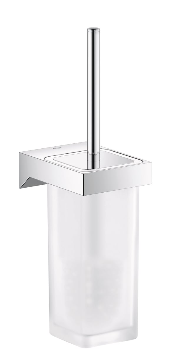 Elegant toiletbørste og holder fra GROHE Selection Cube. Fremstillet i glas og metal med holdbar GROHE StarLight-belægning.