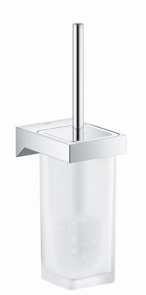 GROHE Selection Cube toiletbørste med holder. Fremstillet i metal og glas med GROHE StarLight-belægning. Væghængt med skjulte skruer.