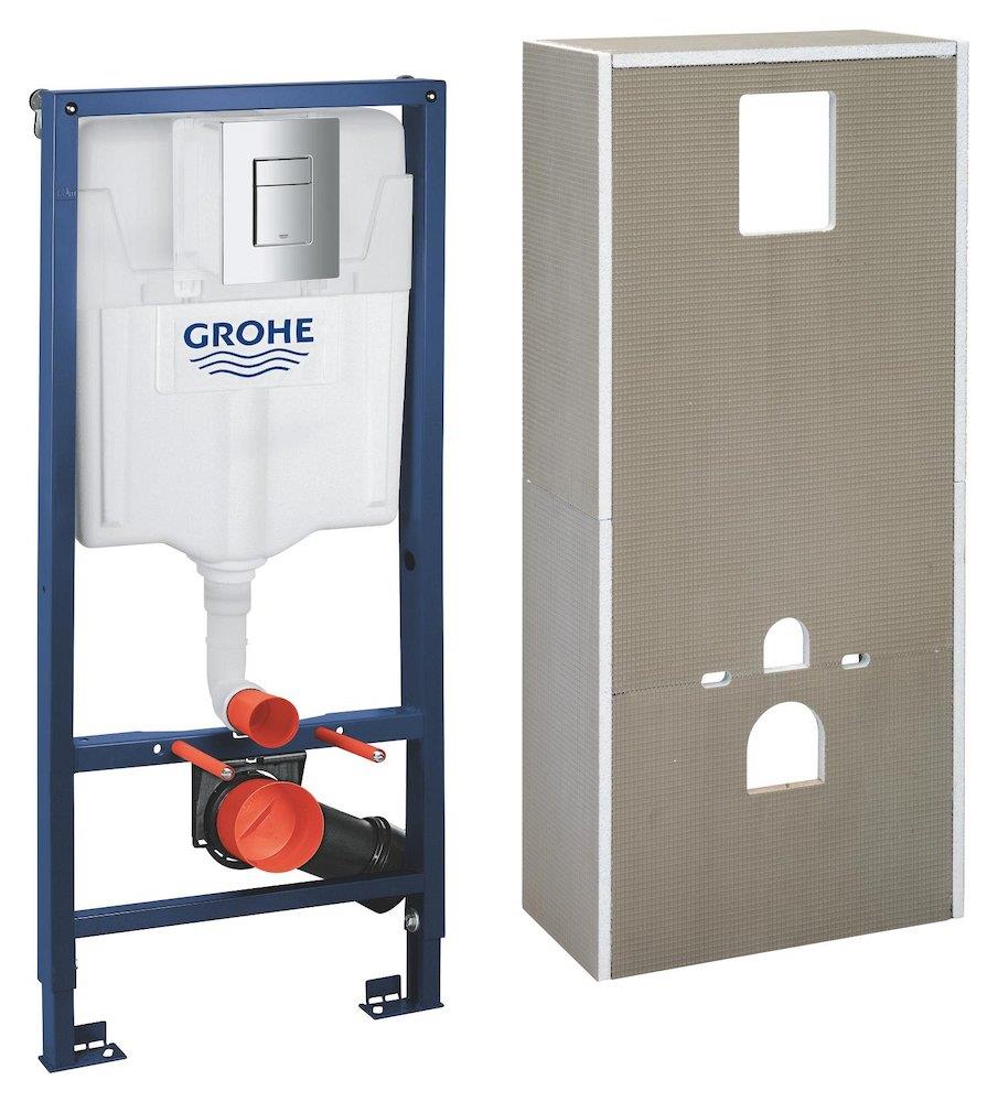 Komplet 4-i-1 indbygningscisterne til væghængte toiletter med 1,13 meter installationshøjde og krom Even betjeningsplade. Cisterne GD 2 med 6-9 liter skyllevolumen.