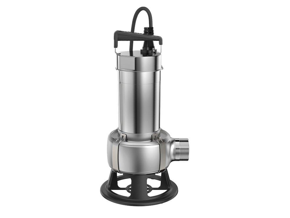 Vertikal ettrins-dykpumpe i rustfrit stål med integreret 3-faset dykmotor. Designet til pumpning af overfladevand, grundvand og spildevand.