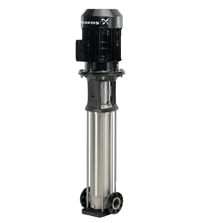 Vertikal, normalsugende, in-line flertrins-centrifugalpumpe til installation i røranlæg samt montering på fundament. Med løbere, mellemkamre og svøb i rustfrit stål.