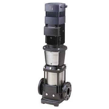 Vertikal, normalsugende, in-line flertrins-centrifugalpumpe til installation i røranlæg samt montering på fundament. Med løbere, mellemkamre og svøb i rustfrit stål.