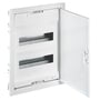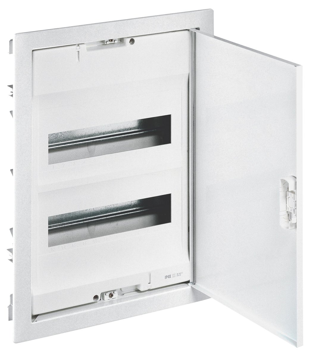 Gruppeafdækning til indbygning i lette skillevægge eller murværk. 2 rækker, 12 moduler pr. række. Leveres med isolerede terminaler i IP20 og røgfarvet plastdør.
