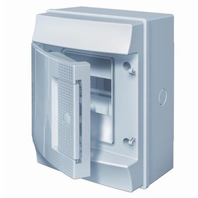 Vægmonteret IP65 gruppefordelingstavle fra MISTRAL65-serien med plads til 4 moduler og en hvid låge.