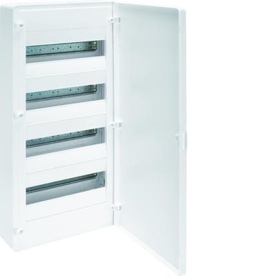 Golf gruppetavle med 4 rækker og 48 moduler til vægmontage. Hvid dør, der kan monteres i begge sider. IP30 uden dør / IP40 med dør.