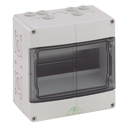 Gruppetavlen er konstrueret med en robust polystyrolkasse og et transparent polycarbonatlåg, hvilket sikrer god beskyttelse af de installerede komponenter. Med en kapslingsklasse på IP65 er tavlen velegnet til anvendelse i miljøer, hvor der stilles krav til beskyttelse mod støv og vand.