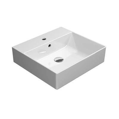 GSI Kube X håndvask til vægmontering, 50x47 cm, med hanehul og overløb. Produceret i antibakteriel og rengøringsvenlig Extraglaze+ glasur.