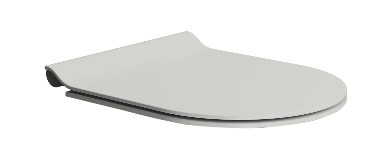 GSI toiletsæde i slim design med soft close og quick release. Fremstillet i antibakterielt materiale i mat grå.