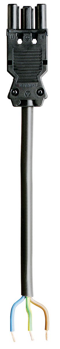 3-polet GST18I3 tilslutningskabel fra Wieland. Hun/fri, H05 Z1Z1-F HF CPR: Cca s1 d1 a1, 250V/16A, 1,5mm2, L=0,5M, sort.