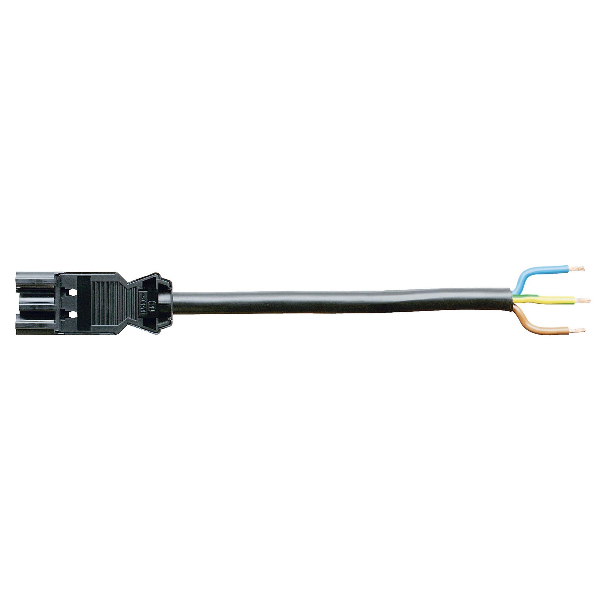 Fleksibelt GST18i3 tilslutningskabel fra Wieland. 3-polet han/fri konnektor, halogenfri, 1,5mm² ledere, sort, 10 meter.
