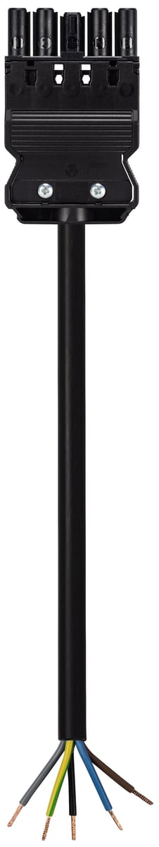 5-polet GST18I5 tilslutningskabel fra Wieland. Kabeltype: H05 Z1Z1-F HF CPR: B2ca s1 d1 a1, 250/400V/20A, 2,5mm2, L= 2M, sort.