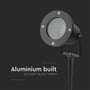 GU10 havelampe med spyd fra V-Tac Pro serien. Fremstillet i aluminium og designet til udendørs brug med en IP65-klassificering.