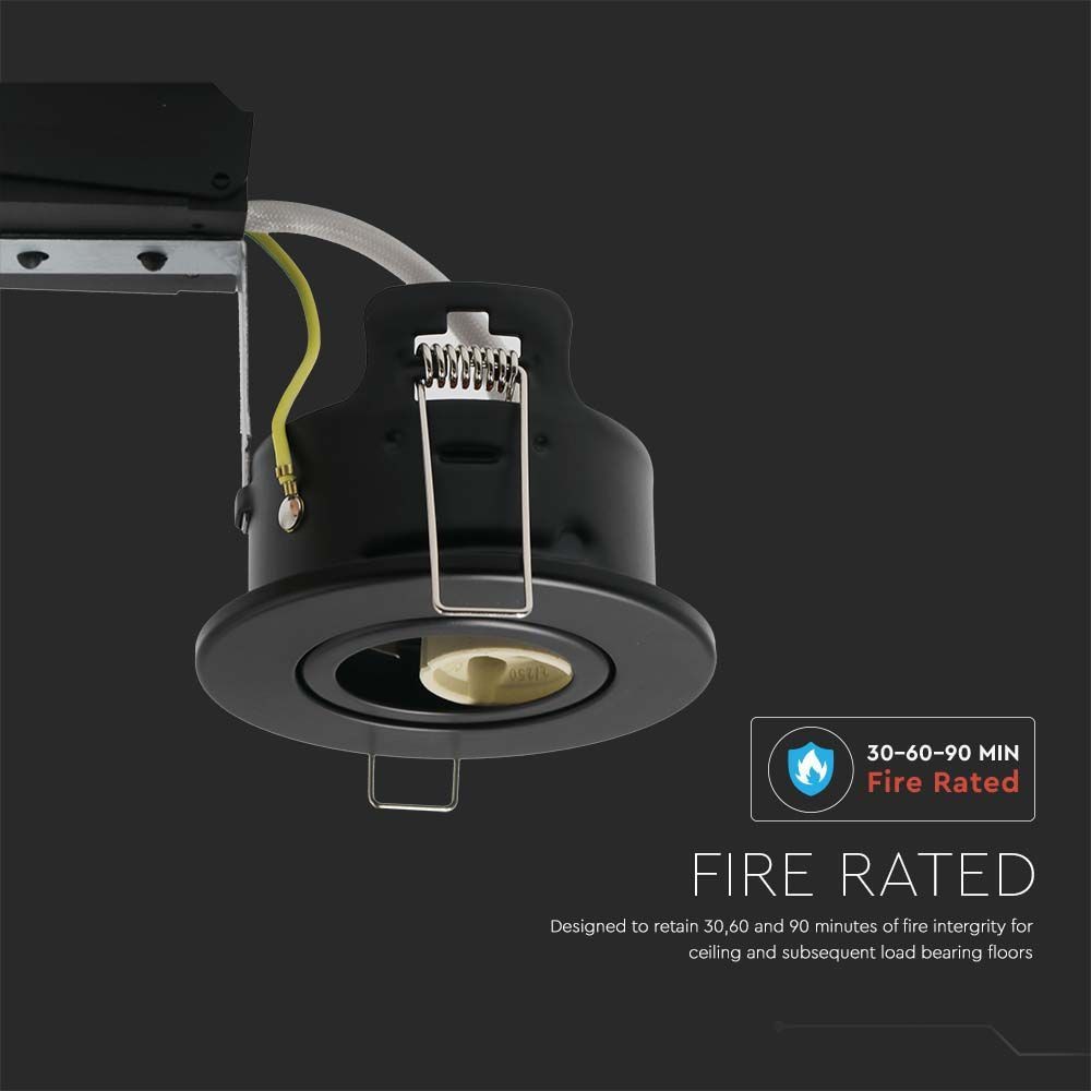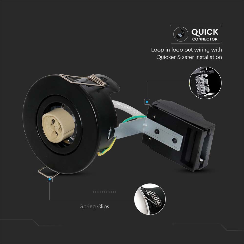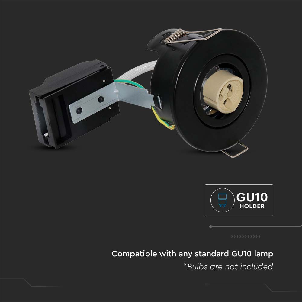 Elegant sort GU10 indbygningsspot i aluminium. IP20 klassificeret, ideel til indendørs brug. Kræver 230V.