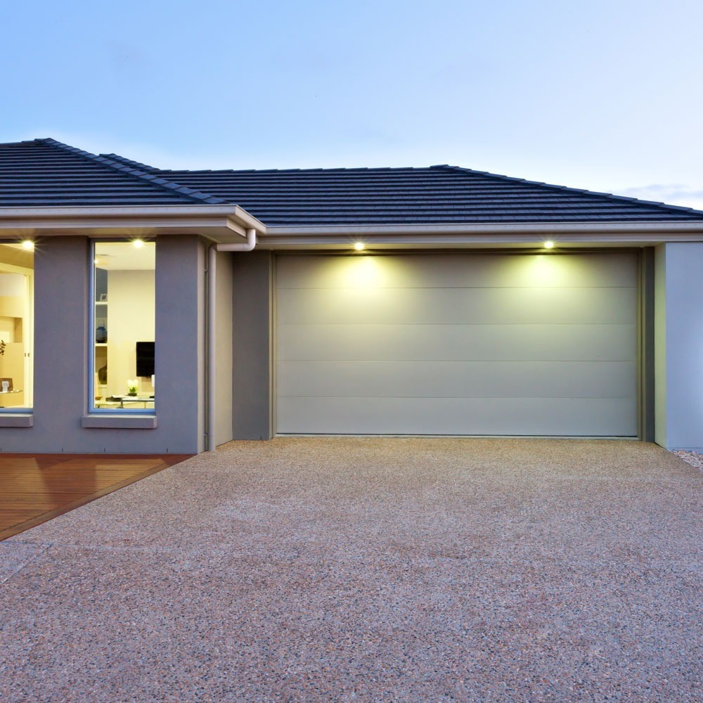 Rund GU10 lampe i satin nikkel finish, IP54 klassificeret, ideel til udendørs brug. Mål: 84x38 mm.
