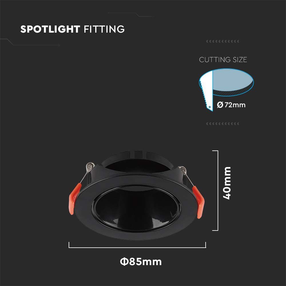 GU10 ramme, sort, PC, IP20, til hulstørrelse 72 mm - V-Tac Pro