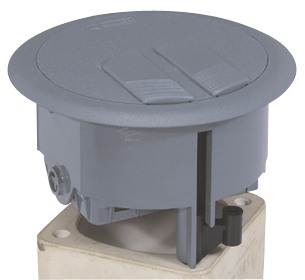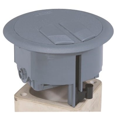 Gulvboks med 3 moduler, der giver plads til 1 stikkontakt. Udstyret med tomme monteringsbokse til Mosaic produkter. Minimum indbygning 80 mm.