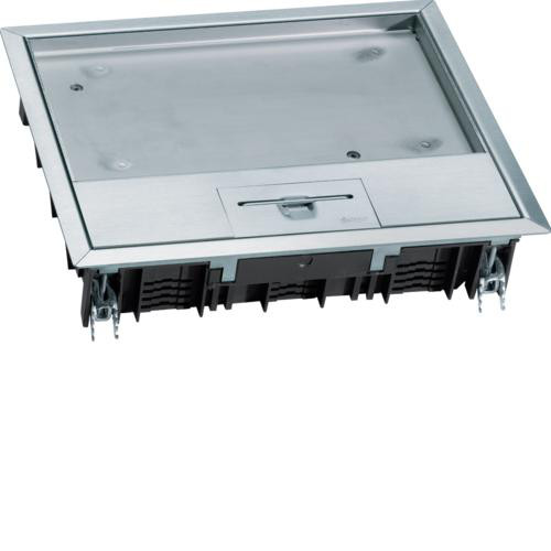 Gulvboks E09 i rustfrit stål, designet til en belægningstykkelse på 12mm. Ideel til diskrete installationer.