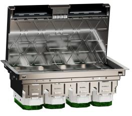 Gulvboksen er velegnet til 45 x 45 mm enkelt / 45 x 90 mm dobbelt Unica-udtag (45 x 45 mm svarer til 1 modul).