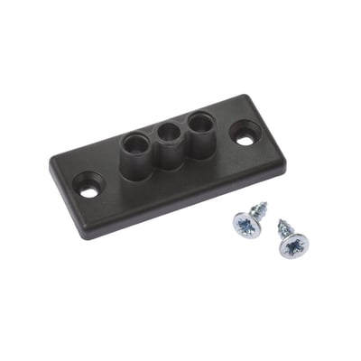 Sort gulvliste beslag fra Schneider Electric til fastgørelse af gulvliste til bord.