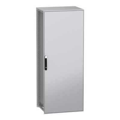 PanelSeT SFN gulvskab i modulært, dekarboniseret stål. Velegnet til mange formål. Mål: 2000x800x600 mm. Gråt kabinet med sort håndtag, IP55- og IK10-klassificering.