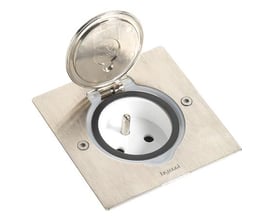 Indstøbningsboks med låg, der er velegnet til installation i enten beton- eller hævede gulve. Denne model er designet til gulve med følgende dimensioner: