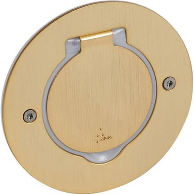 Rund gulvstik fra Legrand til 2 moduler. Messing/guld børstet stål coating. Kan bestykkes med Mosaic produkter. Dimensioner: Ø 90mm. IP44 og IK08.