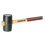Gummihammer med Ø65mm hoved, træskaft i asketræ. DIN 5128-60, 60 Shore A. Med to flade overflader.