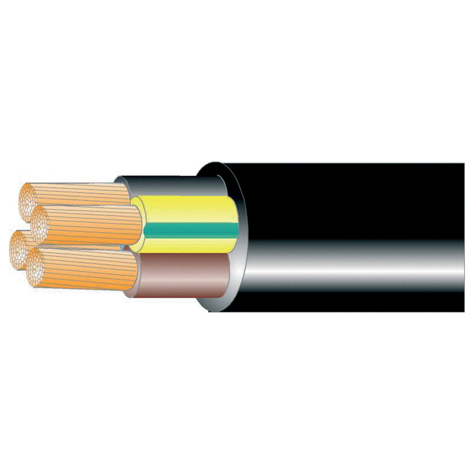 Gummikabel H05RR-F 4G1,5 R100 til tilledning af brugsgenstande. Ledningen er ikke egnet til udendørs brug. Fås med fintrådet CU litzen.