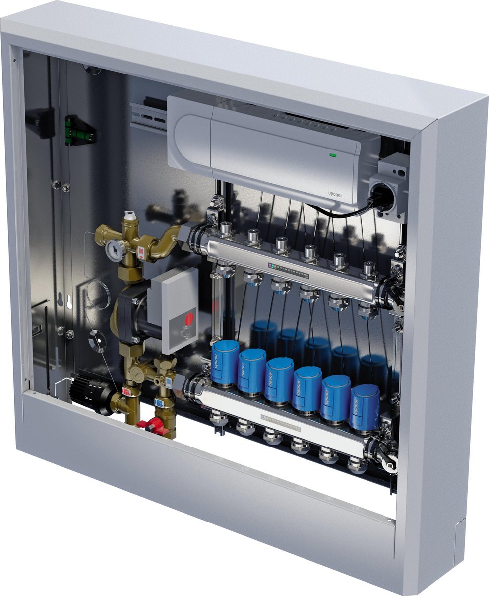- Udstyret med Uponor Smatrix Pulse trådløs kontrolenhed for automatisk og dynamisk indregulering