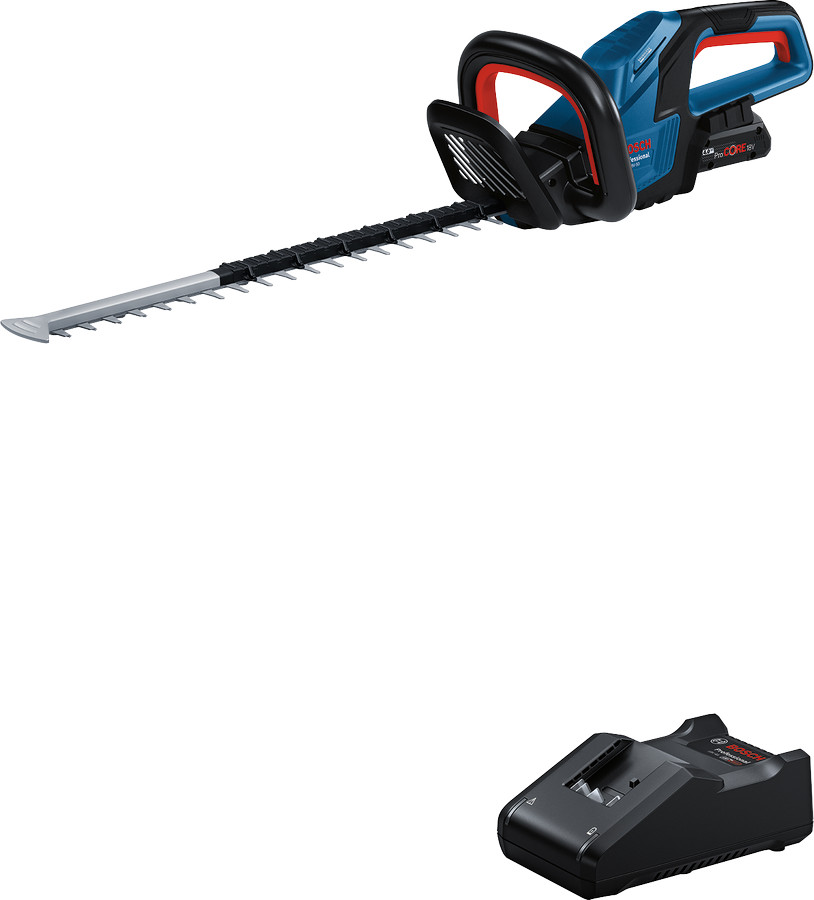 Den batteridrevne hækkeklipper GHE 18V-50 Professional er designet til let betjening med sit ergonomiske design. Den kraftige, kulfri motor sikrer uafbrudt klipning af mellemtykke hække. Med en skærekapacitet på 20 mm kan du nemt og hurtigt klippe tykkere grene.