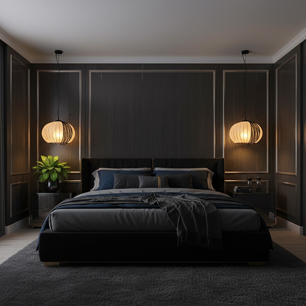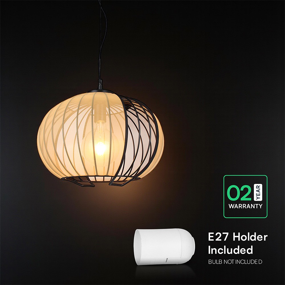 Stilfuld E27 pendellampe i mat sort og beige med en diameter på 40cm. Perfekt til at skabe stemning uden lyskilde.