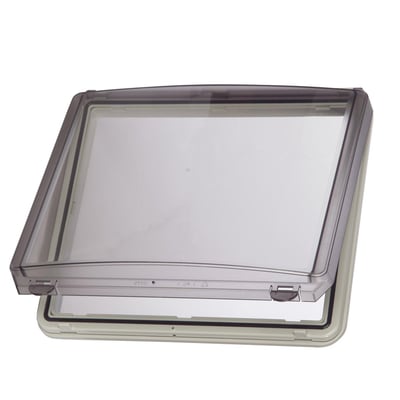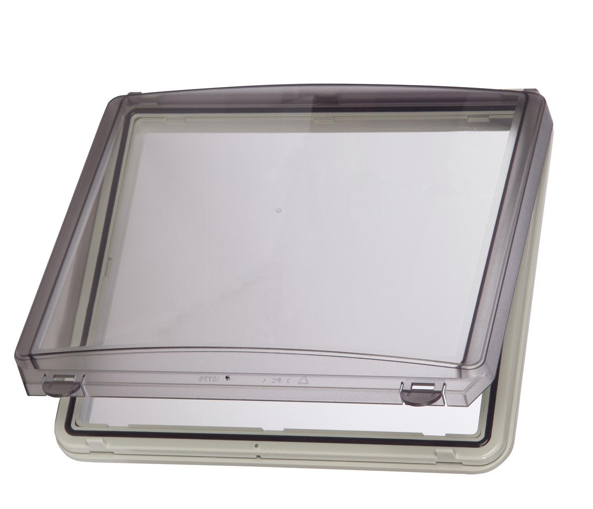 Hængsellåget er fremstillet af polycarbonat og har en transparent farve. Det måler 218 mm i bredden, 248 mm i højden og 26 mm i dybden.