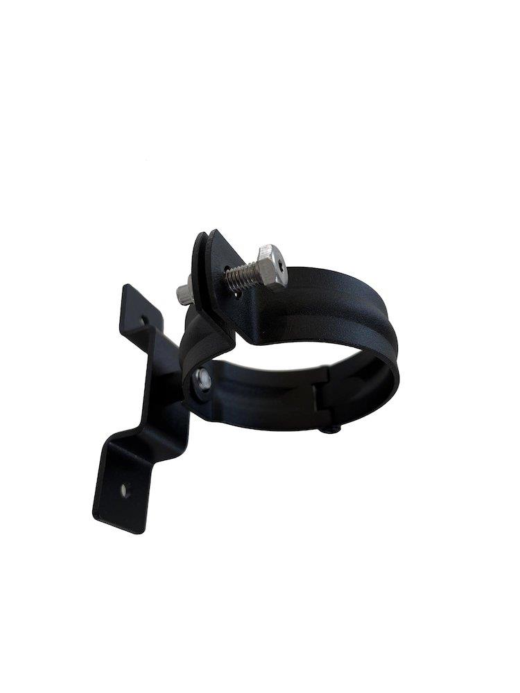 Denne hængselstift er designet til montering i træ og har en diameter på 80mm. Den er udført i sort aluminium og er drejbar.