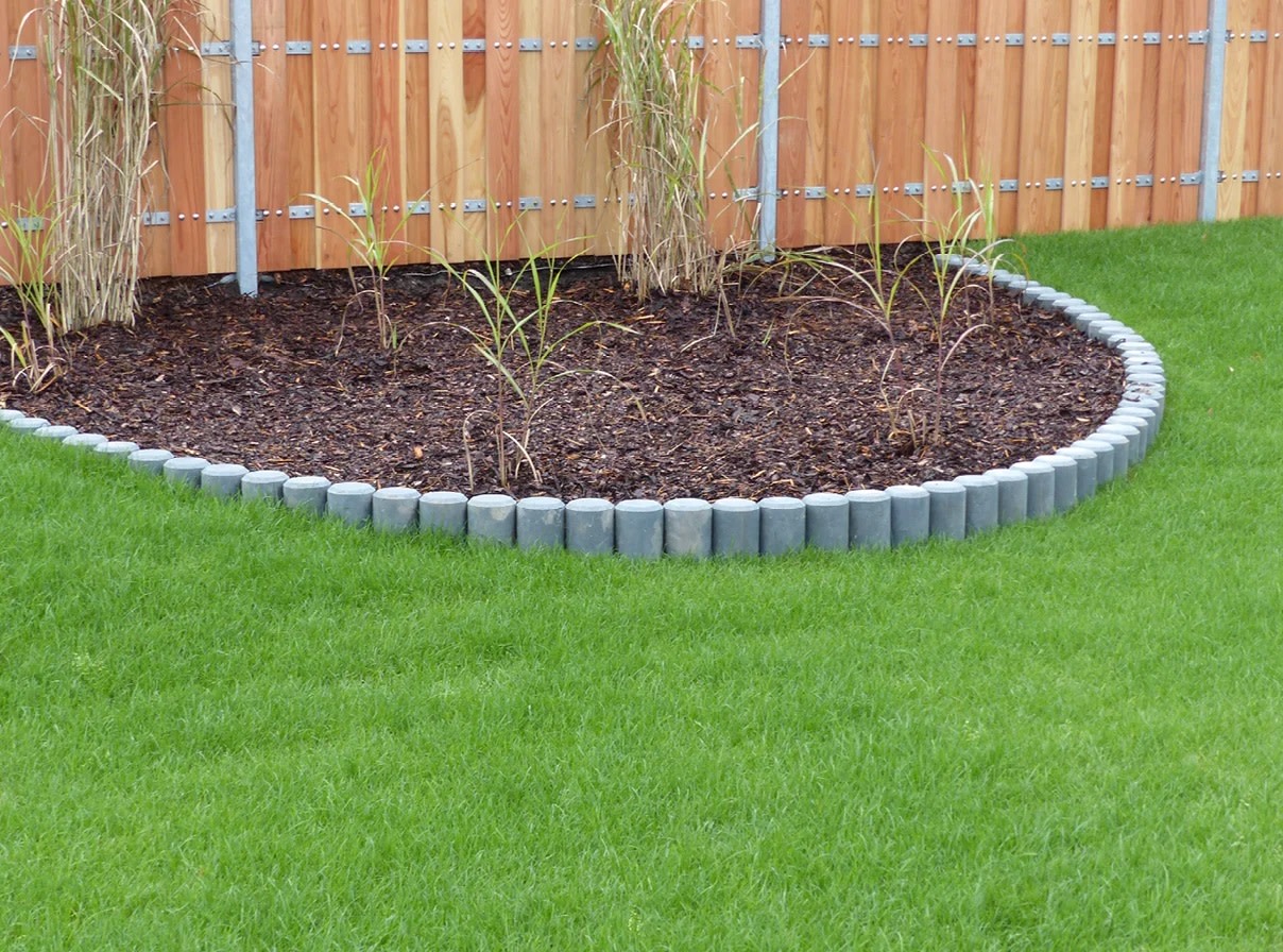 Rund palisade fra Hanit, ideel til have og udendørs brug. Fremstillet af robust, grå genbrugsplast.